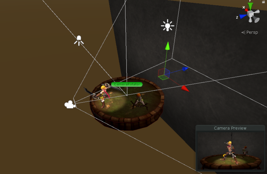 카메라 로테이터 오브젝트를 원형 중앙에 위치시킨 후 메인 카메라를 카메라 로테이터 오브젝트의 자식으로 두었다.